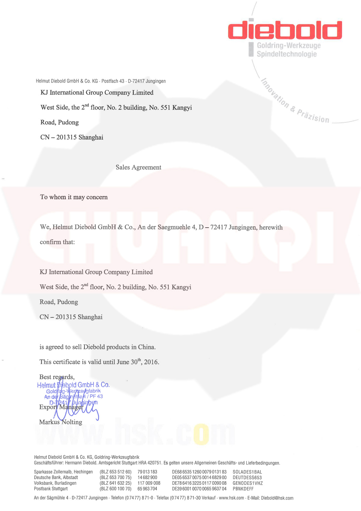 Diebold建于1952年,為機械工具行業制造高精度元件。主要產品HSK主軸、刀具、工具預調儀、對刀儀、邊緣探測器等。